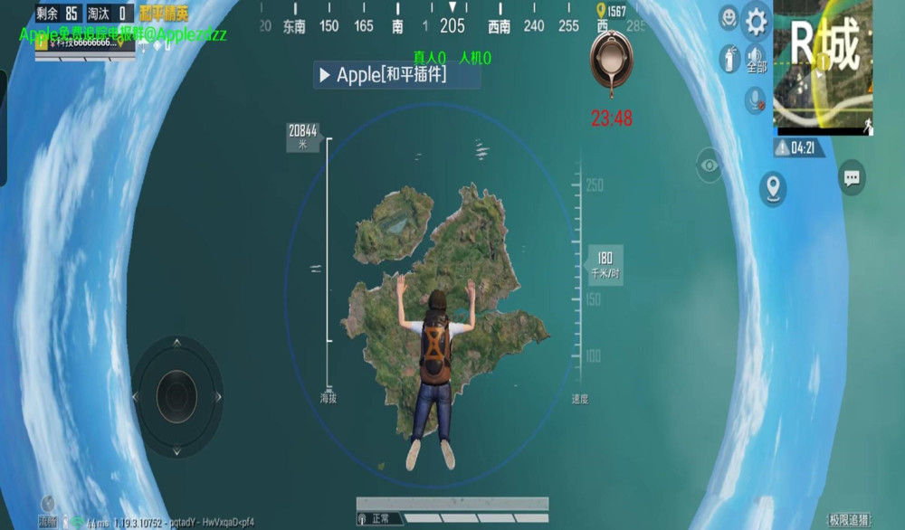 如图所示,比如这个神级的“科技”,别人跳伞后会落地,而“科技”则会让玩家在跳伞的时候飞上高空,达到一定高度后会“停滞”在空中,然后看着地面上的游戏进展,等到决赛圈仅剩下1人的时候,再选择被信号圈淘汰。